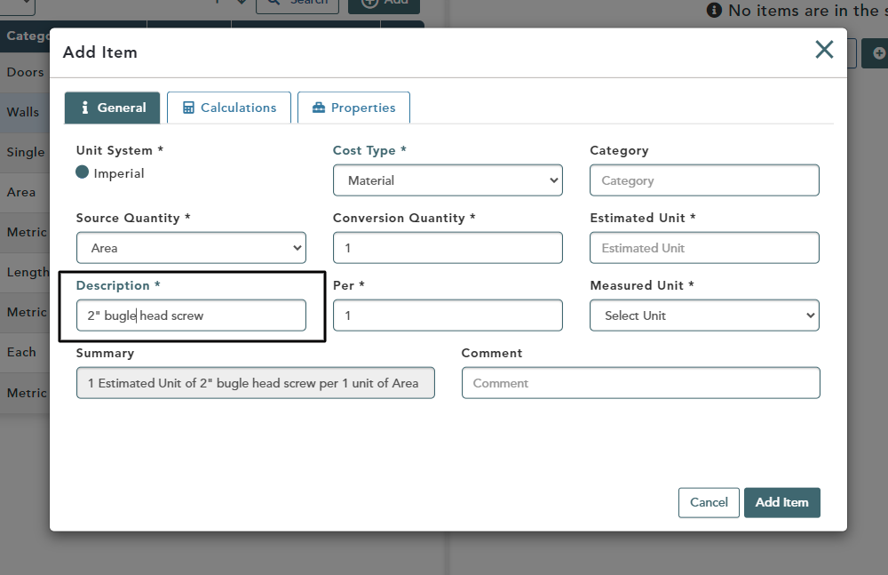 Once you are finished completing all fields, click Add Item in the bottom left of your window